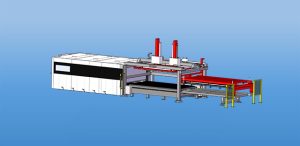The system consists of a set of double-sided gantry truss manipulators, a set of loading manipulators, a set of single material fork type unloading manipulators, a double-layer electric exchange material car, a CNC control system, a vacuum control system, etc., and forms a sheet metal automated production unit with a laser cutting machine. The task of automatic loading and unloading of sheet metal can effectively improve production efficiency and reduce production costs
